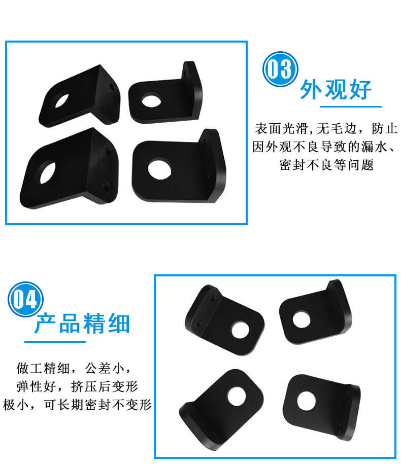 材質(zhì):EPDM、硅膠等(按客戶指定材質(zhì)加工,也可根據(jù)產(chǎn)品性能要求推薦合適的材質(zhì))